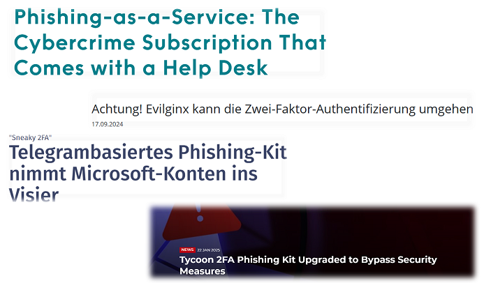 Technische Alternativen wie z. B. FIDO2 / WebAuthn (Passkeys, Security Keys, YubiKey,) können solche Phishing-Angriffe verhindern/abwehren.