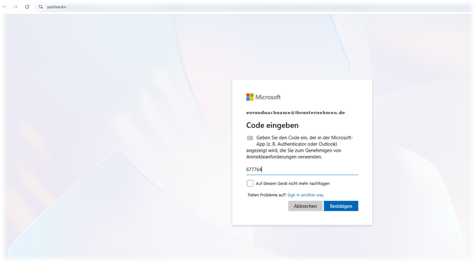 Nun wird das Passwort abgefragt und wie bereits im vorherigen Schritt erfolgt im Hintergrund ein Abgleich mit der echten Microsoft-Anmeldung unter Verwendung Ihrer eingetragenen User-Daten, sollten diese korrekt sein löst der echte Microsoft-Server die reguläre 2FA aus. Da Sie mit einem echten Login rechnen geben Sie diesen 2FA frei. Schritt 6: