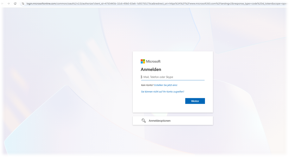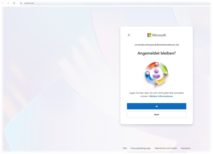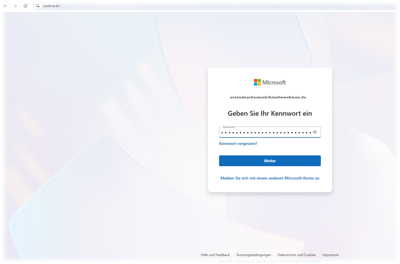 Um einen aufkommenden Verdacht zu zerstreuen, werden Sie abschließend auf die echte Microsoft-Anmeldemaske weitergleitet. Dies ist ein klassischer Trick, um den Betrug zu verschleiern. Schritt 9: