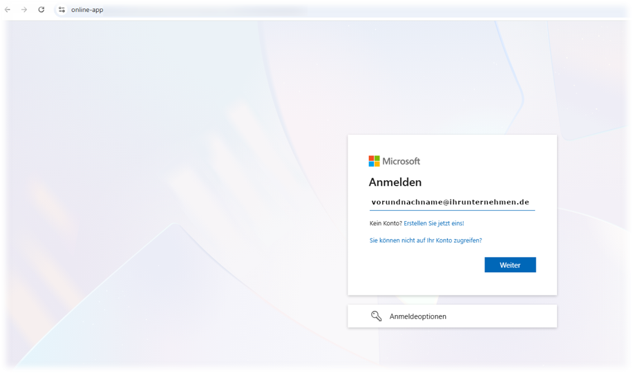 Ab hier erfolgt das eigentliche Phishing, beginnend mit der Abfrage der E-Mail-Adresse. Oft ist sie bereits vorausgefüllt, um Vertrauen zu erwecken und den Login vermeintlich zu erleichtern. Schritt 5: