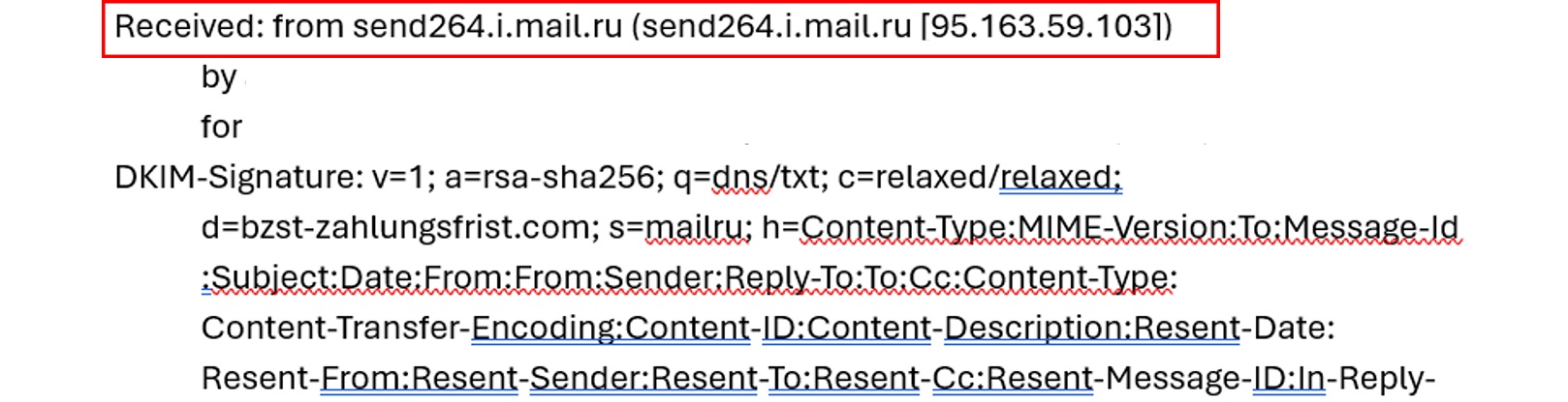 Im erweiterten Header taucht eine IP-Adresse auf, die einem russischen Maildienst zugeordnet ist.